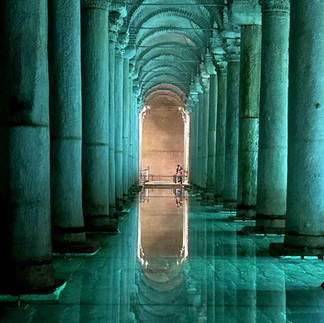 I love the changing light-show in the underground cisterns, built under Emperor Justinian in the 6th c., when Istanbul (then Constantinople) was the powerful center of the Eastern Roman Empire.